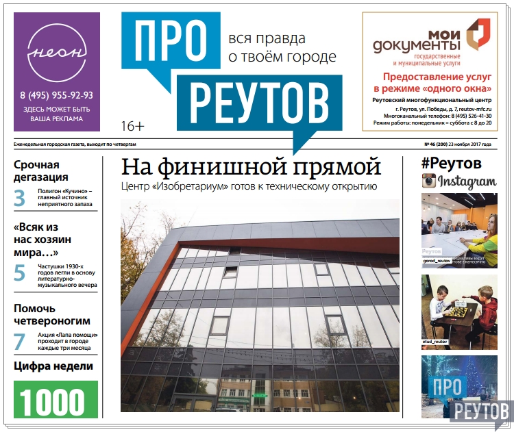 В четверг 23 ноября вышел 46-й (200-й) выпуск бесплатной еженедельной газеты «ПроРеутов».