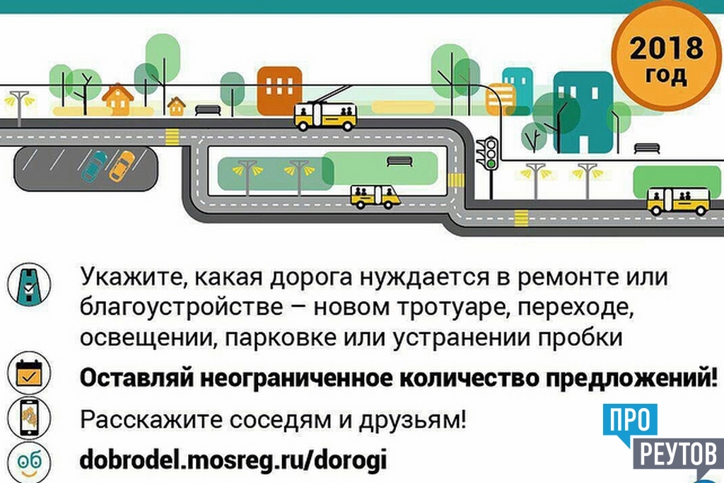 На портале «Добродел» завершается приём заявок по ремонту и благоустройству дорог в муниципальных образованиях Московской области на 2018 год. Успейте сделать свой выбор - до конца голосования осталось 3 дня.