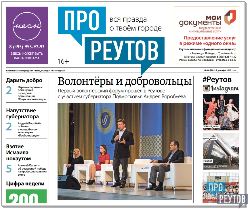 В четверг 7 декабря вышел 48-й (202-й) выпуск бесплатной еженедельной газеты «ПроРеутов».