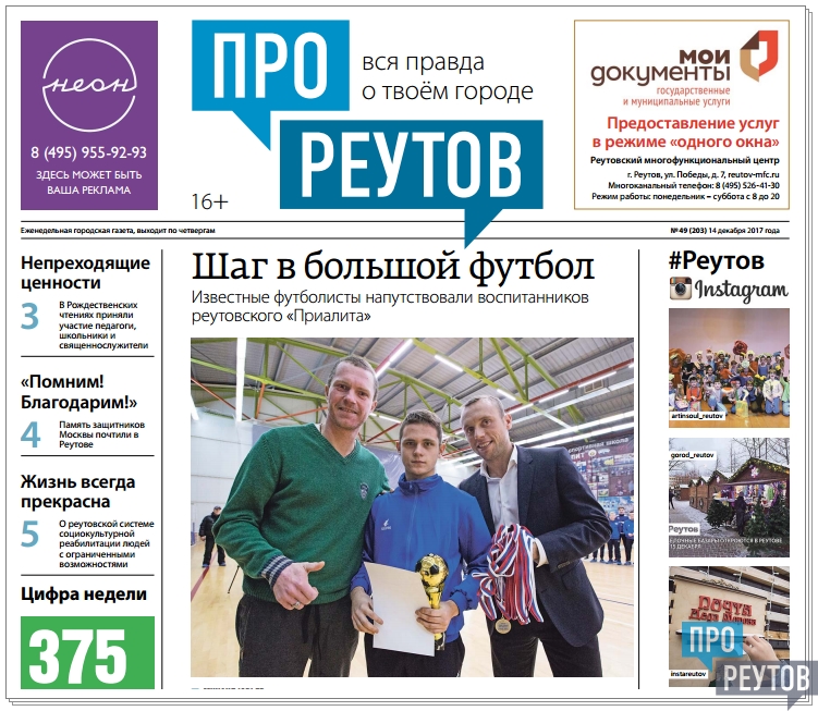 В четверг 14 декабря вышел 49-й (203-й) выпуск бесплатной еженедельной газеты «ПроРеутов».