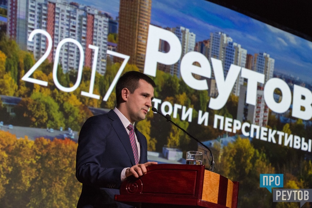 Перед докладом главы Реутова Станислава Каторова собравшимся показали видеофильм о городских событиях 2017 года, затем глава рассказал об основных результатах во всех сферах городской жизни.