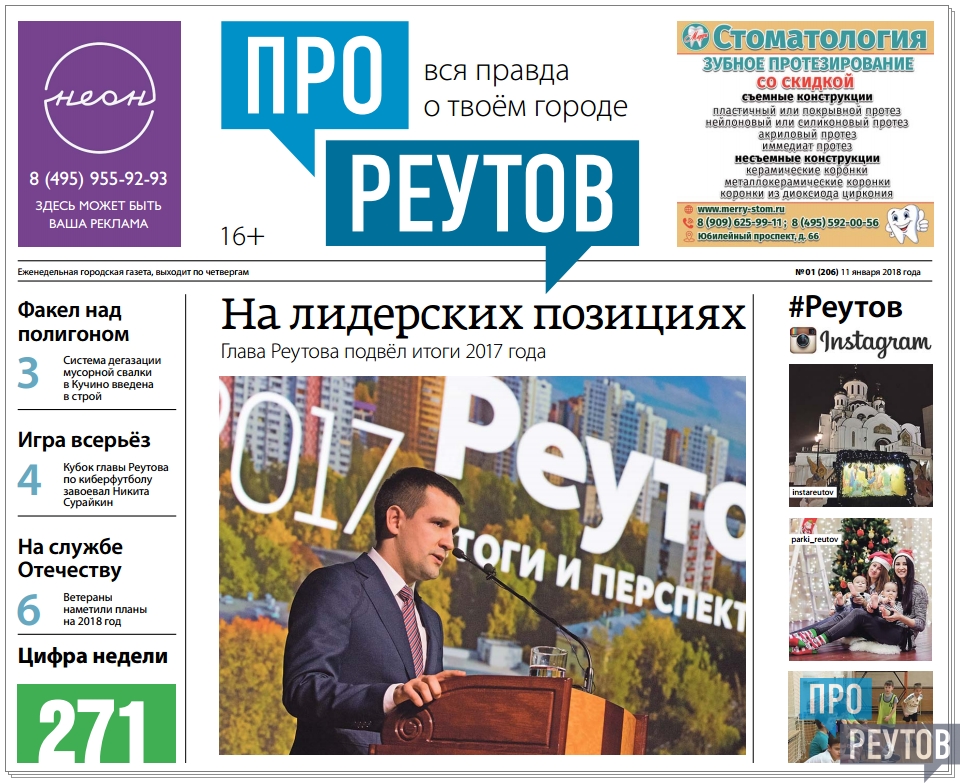 В четверг 11 января вышел 1-й (206-й) выпуск бесплатной еженедельной газеты «ПроРеутов».