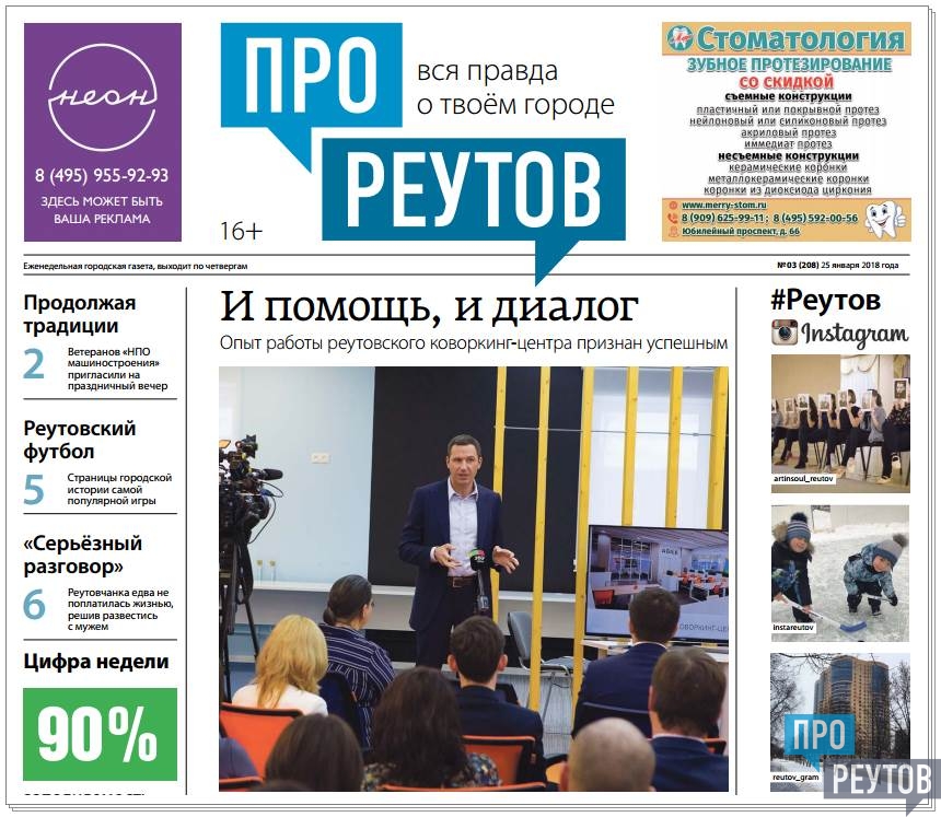 В четверг 18 января вышел 3-й (208-й) выпуск бесплатной еженедельной газеты «ПроРеутов».