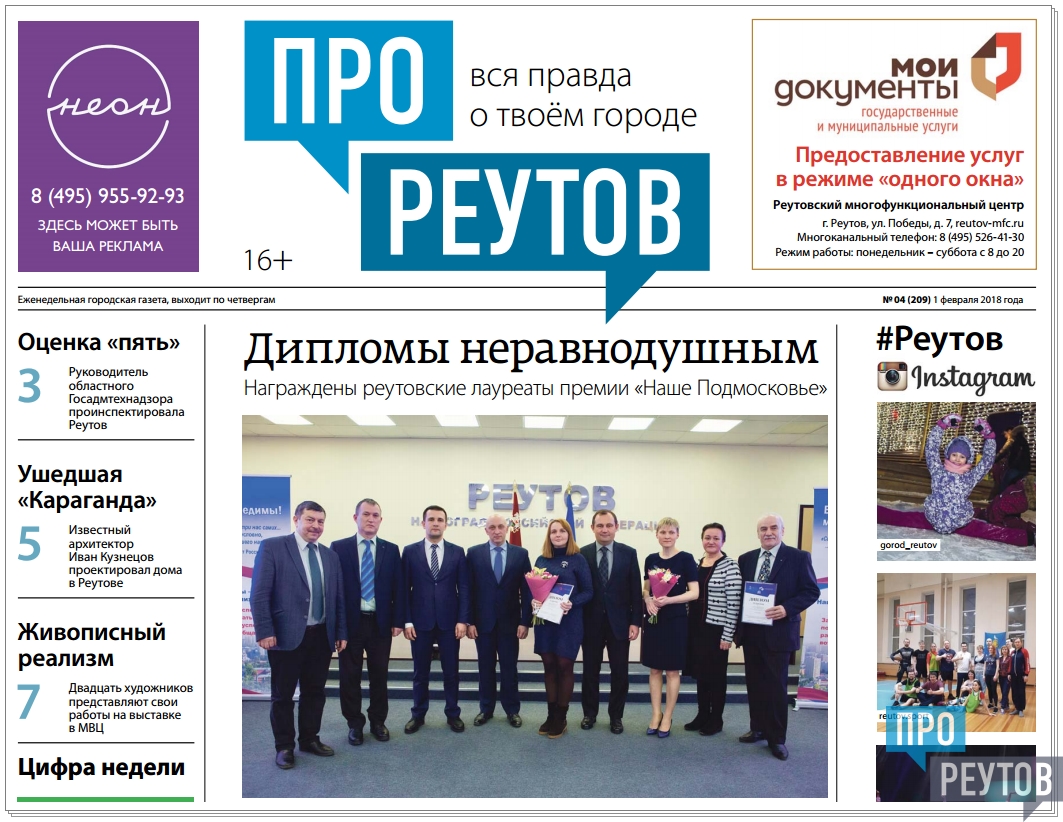 В четверг 18 января вышел 4-й (209-й) выпуск бесплатной еженедельной газеты «ПроРеутов».