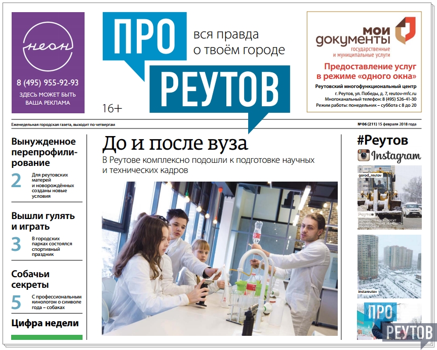 В четверг 18 января вышел 6-й (211-й) выпуск бесплатной еженедельной газеты «ПроРеутов».