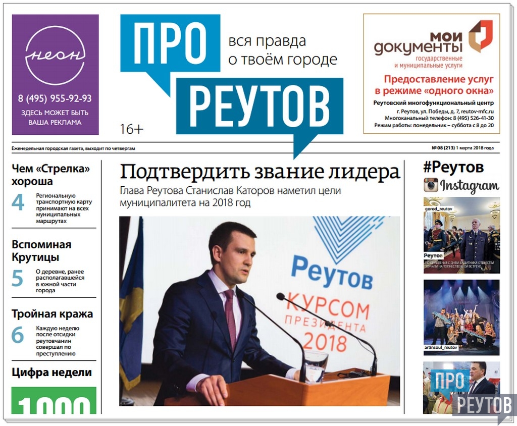 В четверг 22 февраля вышел 8-й (213-й) выпуск бесплатной еженедельной газеты «ПроРеутов».