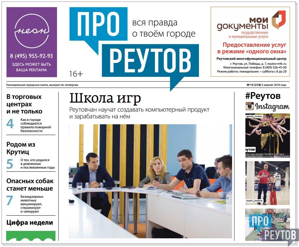 В четверг 5 апреля вышел 13-й (218-й) выпуск бесплатной еженедельной газеты «ПроРеутов».