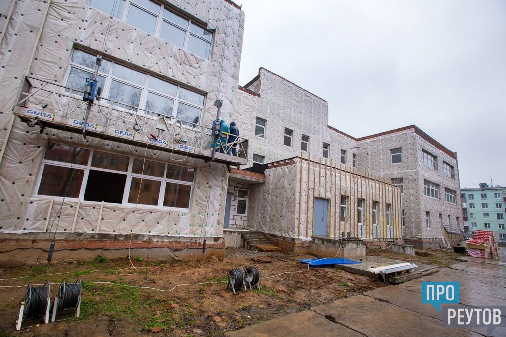 Продолжается отделка здания снаружи: поверх утеплительных плит устанавливают вентилируемый фасад. По словам главы города, чтобы без проблем закончить работы, как планировалось, к июню, необходимо будет увеличить количество работающих на объекте: