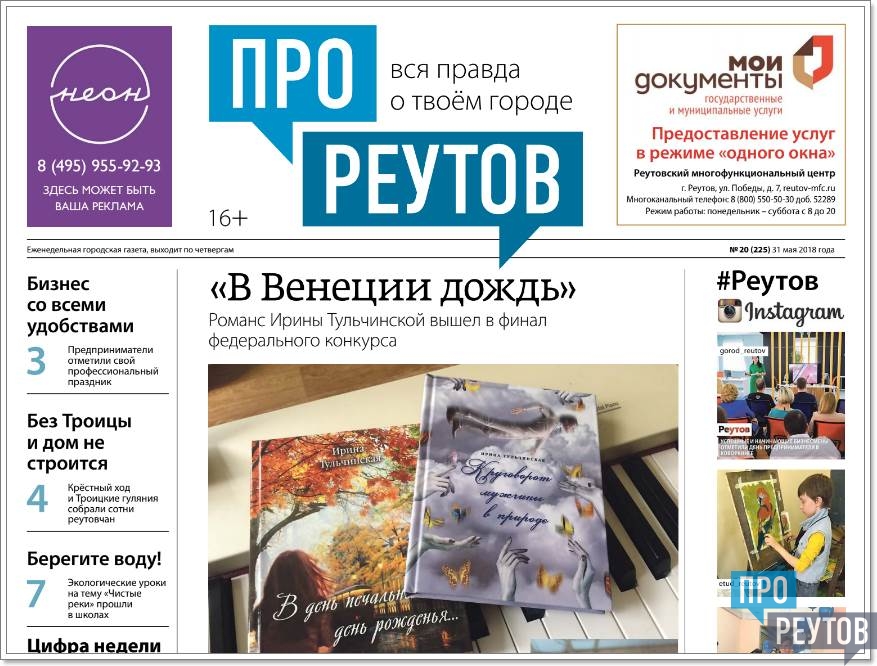 В четверг 31 мая вышел 20-й (225-й) выпуск бесплатной еженедельной газеты «ПроРеутов».