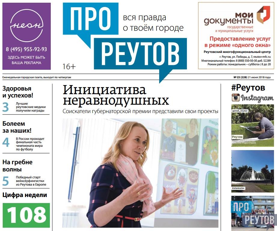 В четверг 21 июня вышел 23-й (228-й) выпуск бесплатной еженедельной газеты «ПроРеутов».