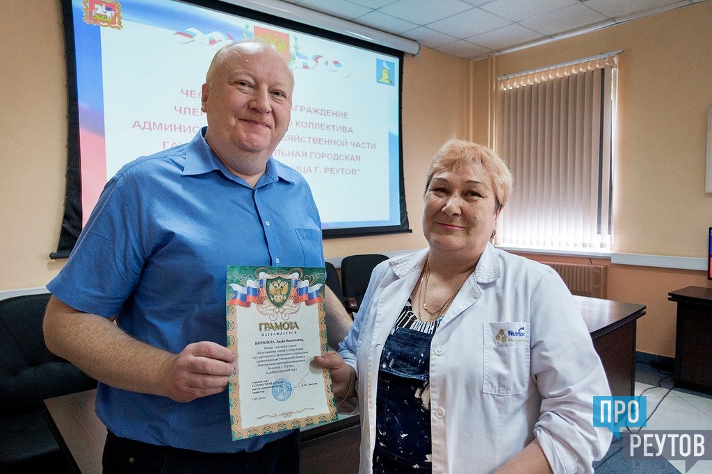 Одним из основных поводов для проведения встречи в конференц-зале центральной городской клинической больницы стало чествование и награждение лучших работников административно-хозяйственной части больницы. Грамотами главного врача за добросовестный труд были награждены два человека — слесарь-электрик Сергей Тимофеев и маляр-штукатур Лидия Королева. Награжденные трудятся в отделении обслуживания зданий и сооружений ЦГКБ.