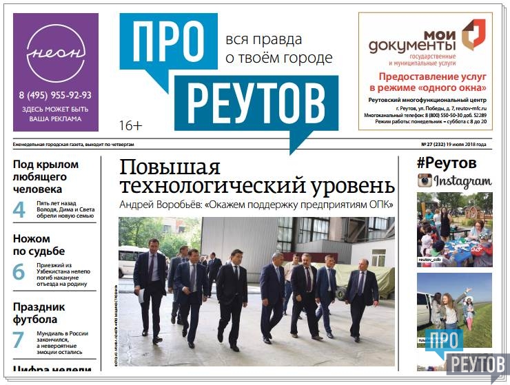 В четверг 19 июля вышел 27-й (232-й) выпуск бесплатной еженедельной газеты «ПроРеутов».