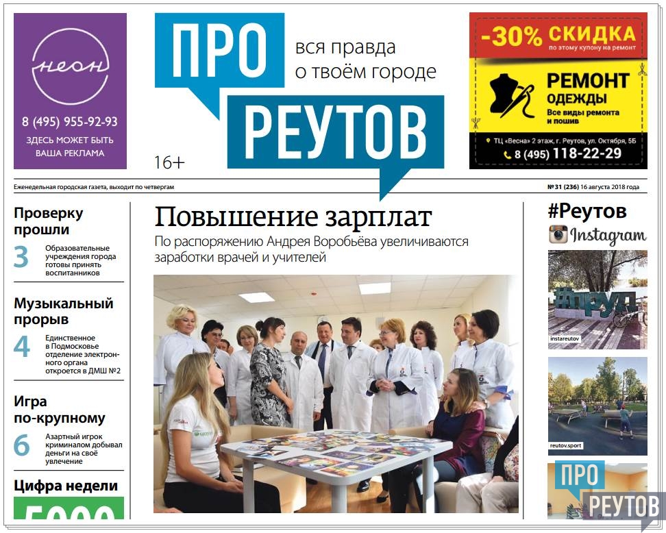 В четверг 16 августа вышел 31-й (236-й) выпуск бесплатной еженедельной газеты «ПроРеутов».