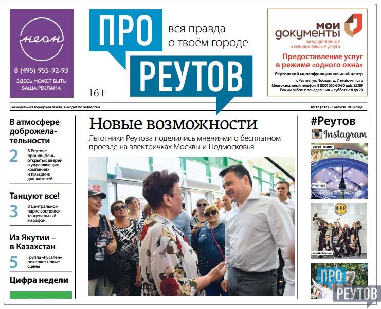 В четверг 23 августа вышел 32-й (237-й) выпуск бесплатной еженедельной газеты «ПроРеутов».
