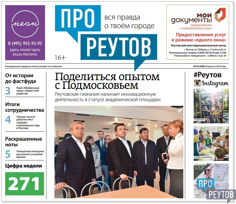 В четверг 30 августа вышел 33-й (238-й) выпуск бесплатной еженедельной газеты «ПроРеутов».