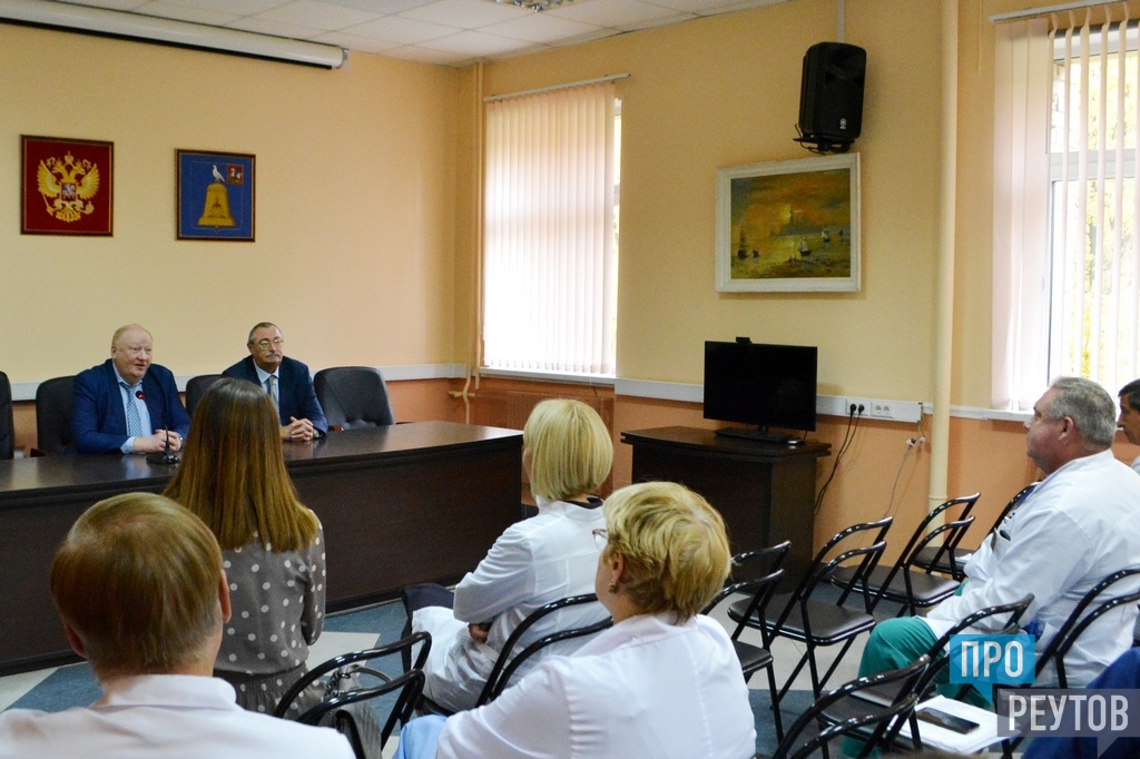 Основная часть мероприятия была посвящена обсуждению организации практической подготовки ординаторов НИИ Склифосовского на базе стационарных подразделений реутовской больницы. Главный врач ЦГКБ, доктор медицинских наук, профессор Российской медицинской академии последипломного образования Константин Лакунин познакомил гостей с руководителями отделений стационаров и структурой учреждения.