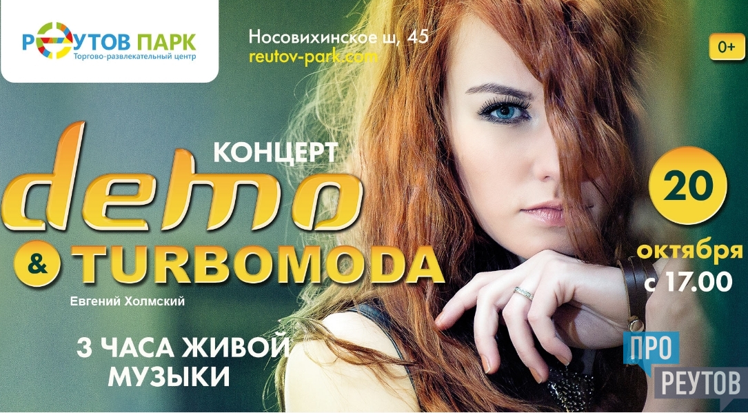 – Группы Demo и «Турбомода» выступят 20 октября в торгово-развлекательном центре «Реутов Парк». Их живой концерт будет бесплатным, вход свободный. Коллективы приедут выступить в Реутов впервые. До начала концерта «на разогреве» для посетителей сыграет ещё один коллектив из Москвы, – сообщила Дончук.