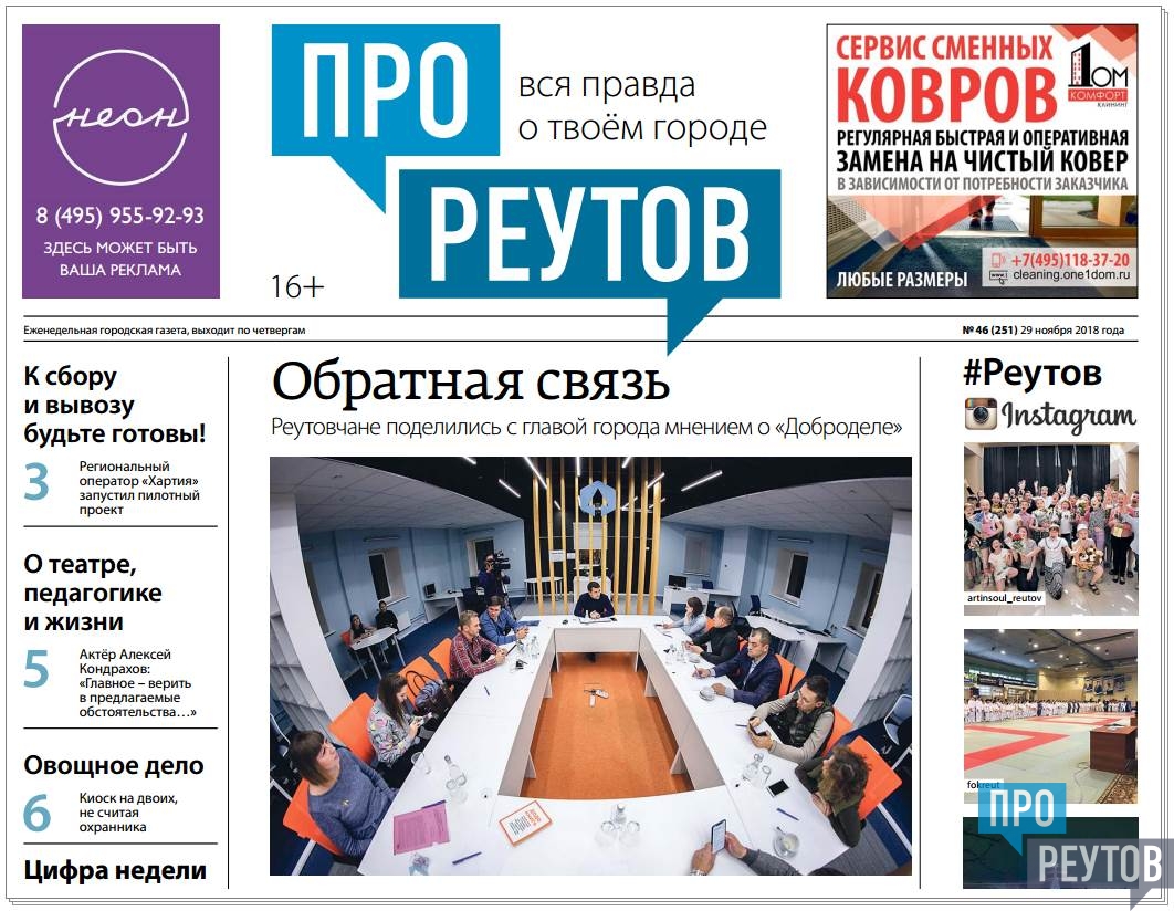В четверг 29 ноября вышел 46-й (251-й) выпуск бесплатной еженедельной газеты «ПроРеутов».