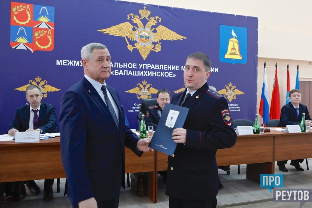 Почётные грамоты главы Реутова получили оперуполномоченный ГУР пункта полиции по обслуживанию микрорайона «Южный» Юрий Савенко, сотрудники отделения участковых уполномоченных полиции и подразделения по делам несовершеннолетних Дмитрий Иванцов и Михаил Власов, дознаватель отдела дознания Анна Решетникова и следователь следственного управления Екатерина Меликова. Сотрудникам вручил грамоты заместитель главы администрации городского округа Реутов Николай Турапин, принявший участие в итоговом совещании.