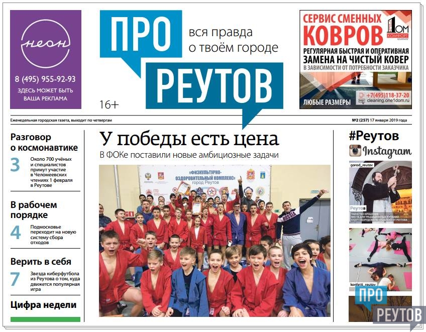 В четверг 17 января вышел 2-й (257) выпуск бесплатной еженедельной газеты «ПроРеутов».