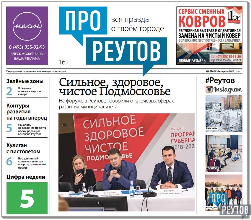 В четверг 14 февраля вышел 6-й (261) выпуск бесплатной еженедельной газеты «ПроРеутов».