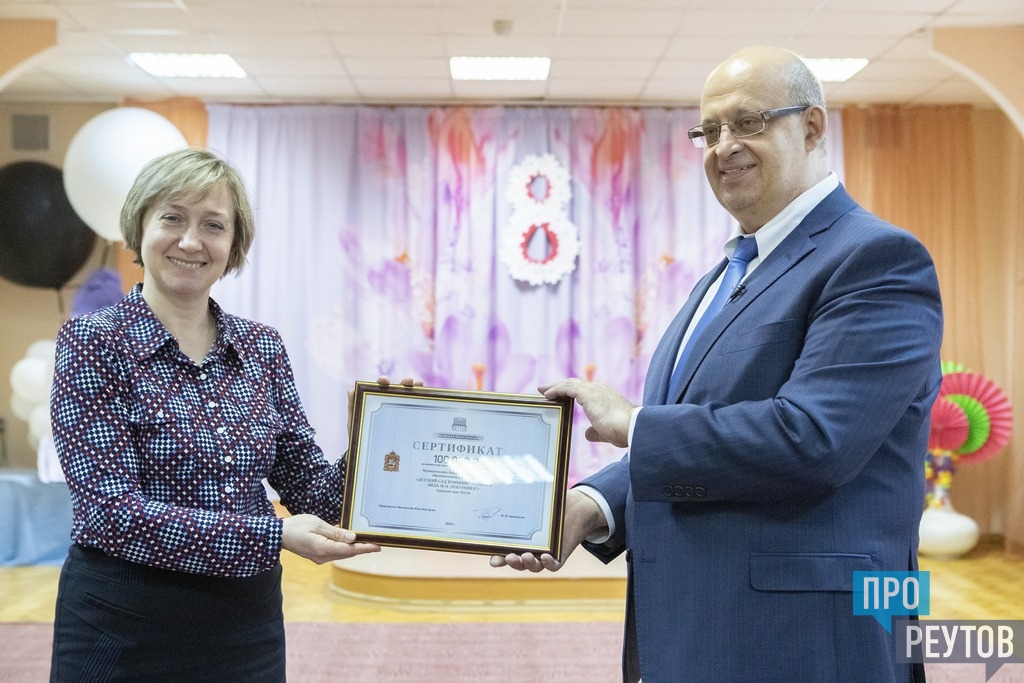 – С 2018 года депутаты городского Совета из фракции «Единая Россия» проводили встречи со многими трудовыми коллективами Реутова, в том числе и с работниками детских садов. На встрече в детском саду № 14 зашла речь о том, что сотрудникам не хватает технического оснащения для более плодотворной работы. Мы обратились к председателю Мособлдумы Игорю Брынцалову, и с помощью фракции «Единая Россия» в региональном парламенте была найдена возможность помочь дошкольному учреждению – и вот сегодня мы вручаем этот сертификат, – рассказал депутат реутовского Совета депутатов Юрий Мещеряков.