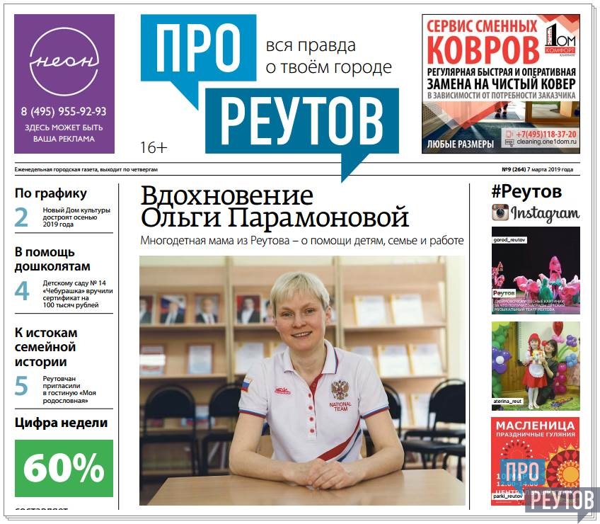 В четверг 7 марта вышел 9-й (264) выпуск бесплатной еженедельной газеты «ПроРеутов».