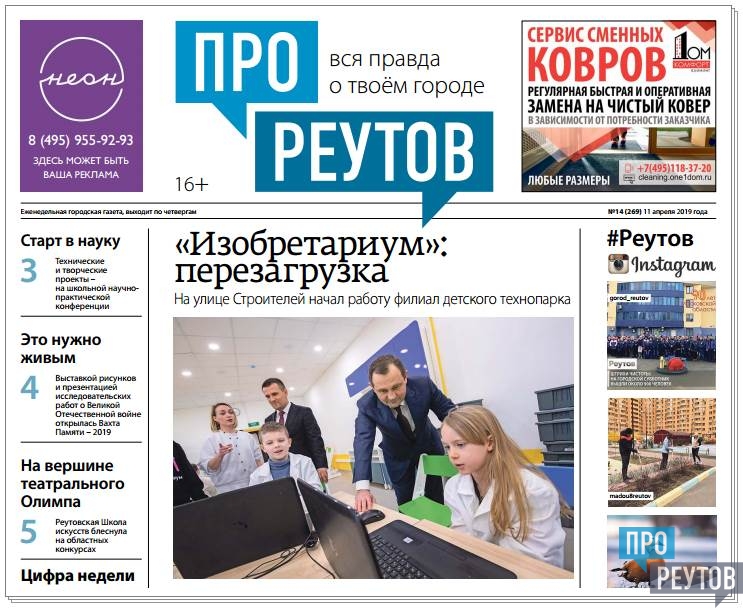 В четверг 11 апреля вышел 14-й (269) выпуск бесплатной еженедельной газеты «ПроРеутов».