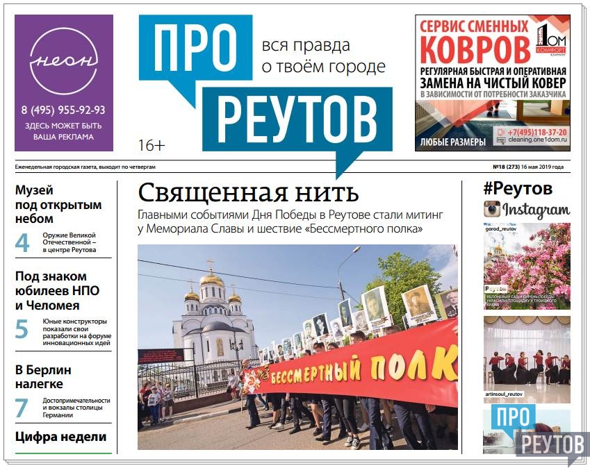 В четверг 16 мая вышел 18-й (273) выпуск бесплатной еженедельной газеты «ПроРеутов».