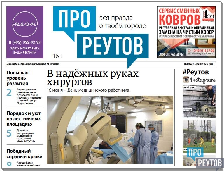 В четверг 20 июня вышел 23-й (278) выпуск бесплатной еженедельной газеты «ПроРеутов».