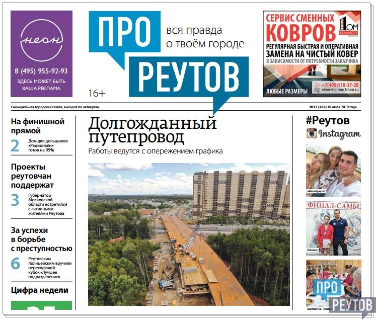 В четверг 18 июля вышел 27-й (282) выпуск бесплатной еженедельной газеты «ПроРеутов».