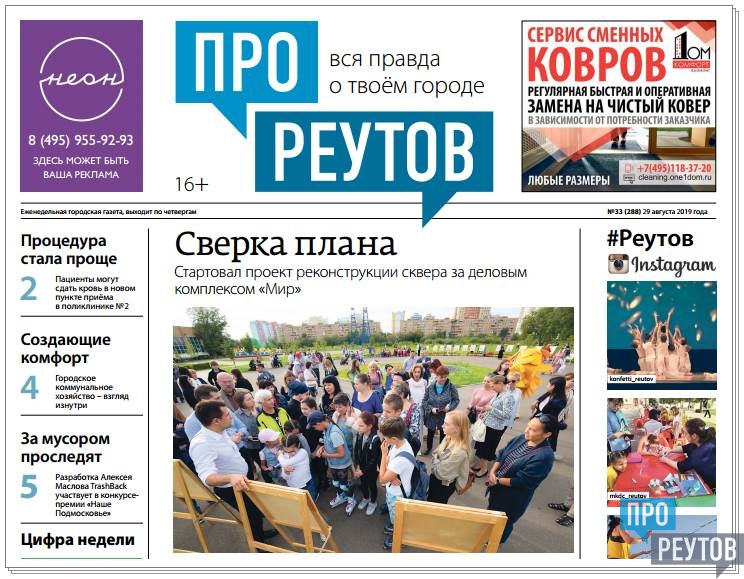 В четверг 29 августа вышел 33-й (288) выпуск бесплатной еженедельной газеты «ПроРеутов».