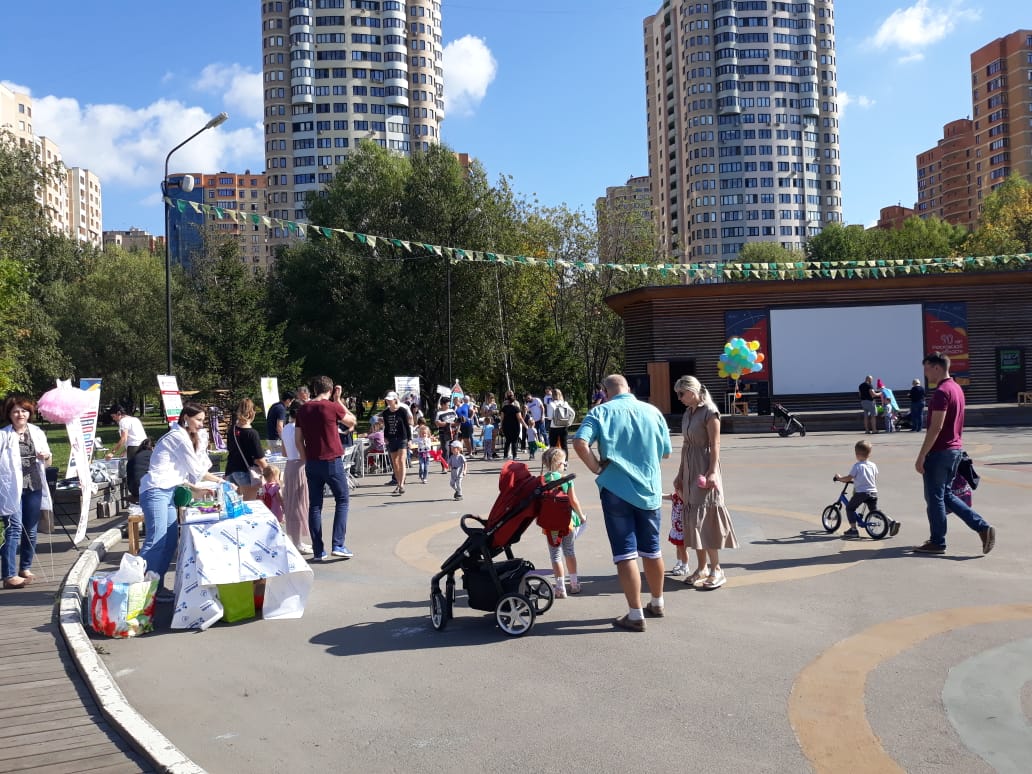 Клуб юных химиков, хореографическая студия, школа робототехники и многое другое представлены на сценической площадке парка. Скоро здесь начнётся театрализованное представление. Ну а различные творческие и спортивные мероприятия и выступления артистов в рамках празднования Дня города здесь пройдут до самого вечера.