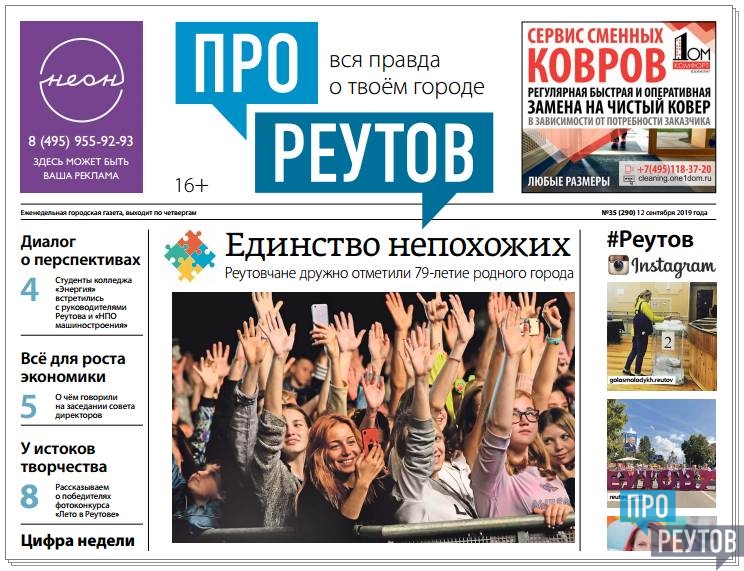 В четверг 12 сентября вышел 35-й (290) выпуск бесплатной еженедельной газеты «ПроРеутов».