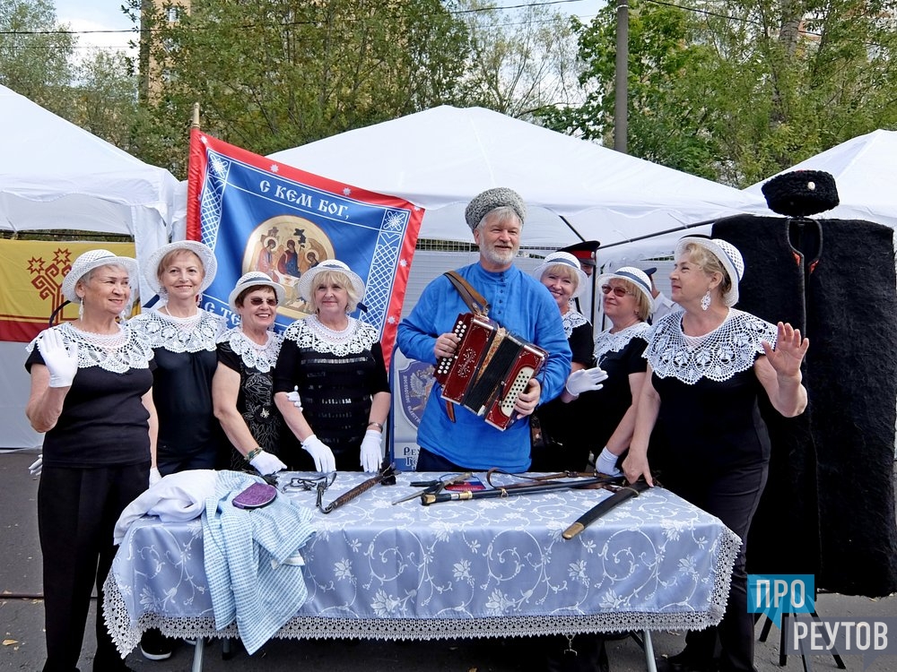 Представители реутовского городского казачьего общества и их товарищи из Балашихи припасли для гостей фестиваля небольшую выставку обмундирования и снаряжения настоящих казаков, показали мастер-класс по фланкировке (комплекс упражнений, нарабатывающих культуру и навык обращения с холодным оружием) и спели под живую гармонь не только казачьи, но и русские народные песни.