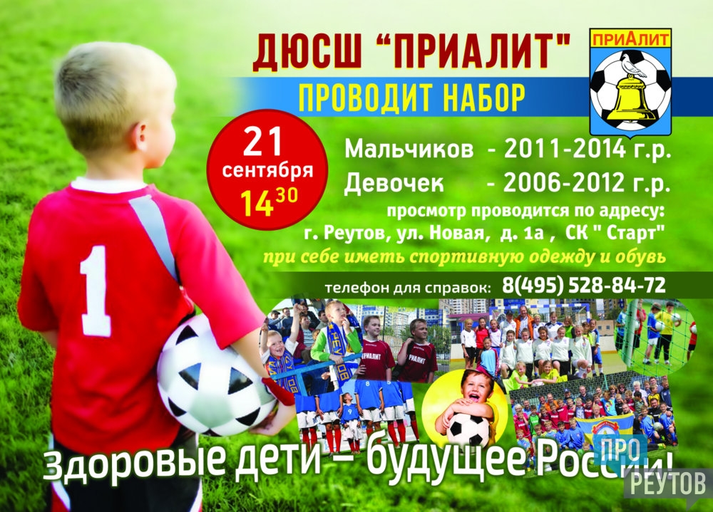 Реутовская футбольная детско-юношеская спортивная школа (ДЮСШ) «Приалит» в 2020 году отметит 25-летие. Девиз школы - «Здоровые дети – будущее России».