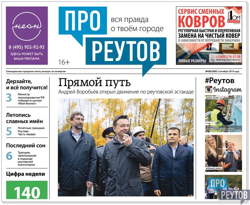 В четверг 3 октября вышел 38-й (293) выпуск бесплатной еженедельной газеты «ПроРеутов».