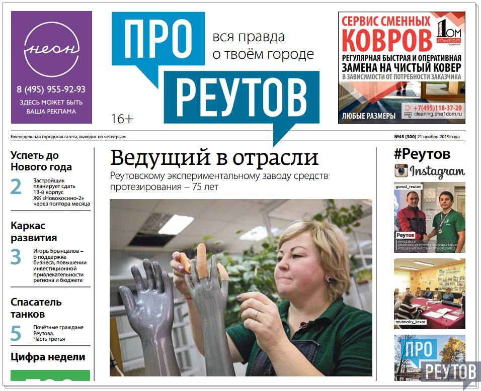 В четверг 21 ноября вышел 45-й (300) выпуск бесплатной еженедельной газеты «ПроРеутов».