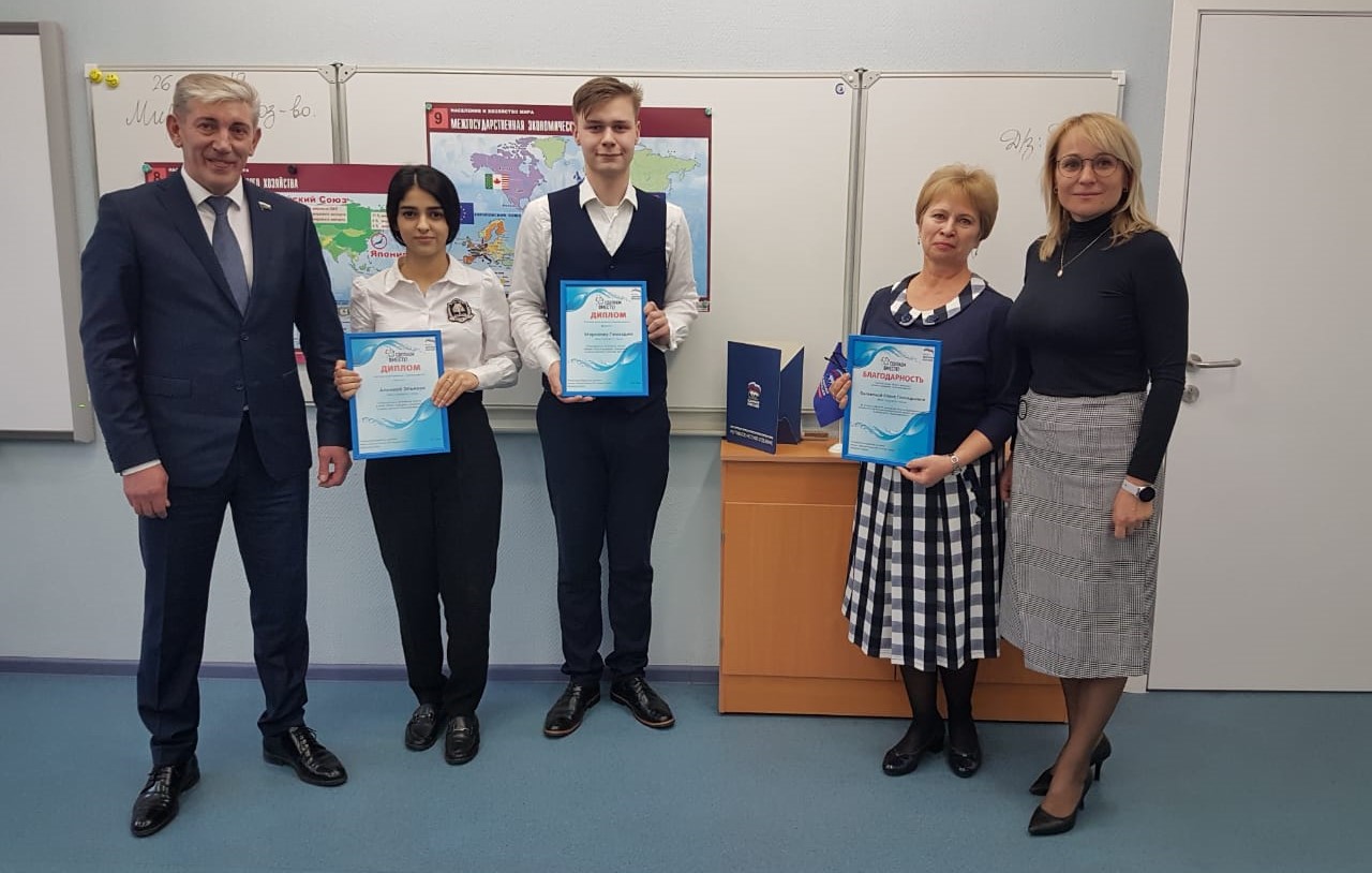 Член фракции «Единая Россия» в Совете депутатов городского округа Реутов Андрей Середой вручил преподавателю муниципальной школы №10 Елене Валевской и учащимся Эльнаре Алиевой и Геннадию Морозову диплом и благодарственные письма за активное участие в акции «Вода и здоровье», проведенной в рамках движения «Сделаем вместе!».