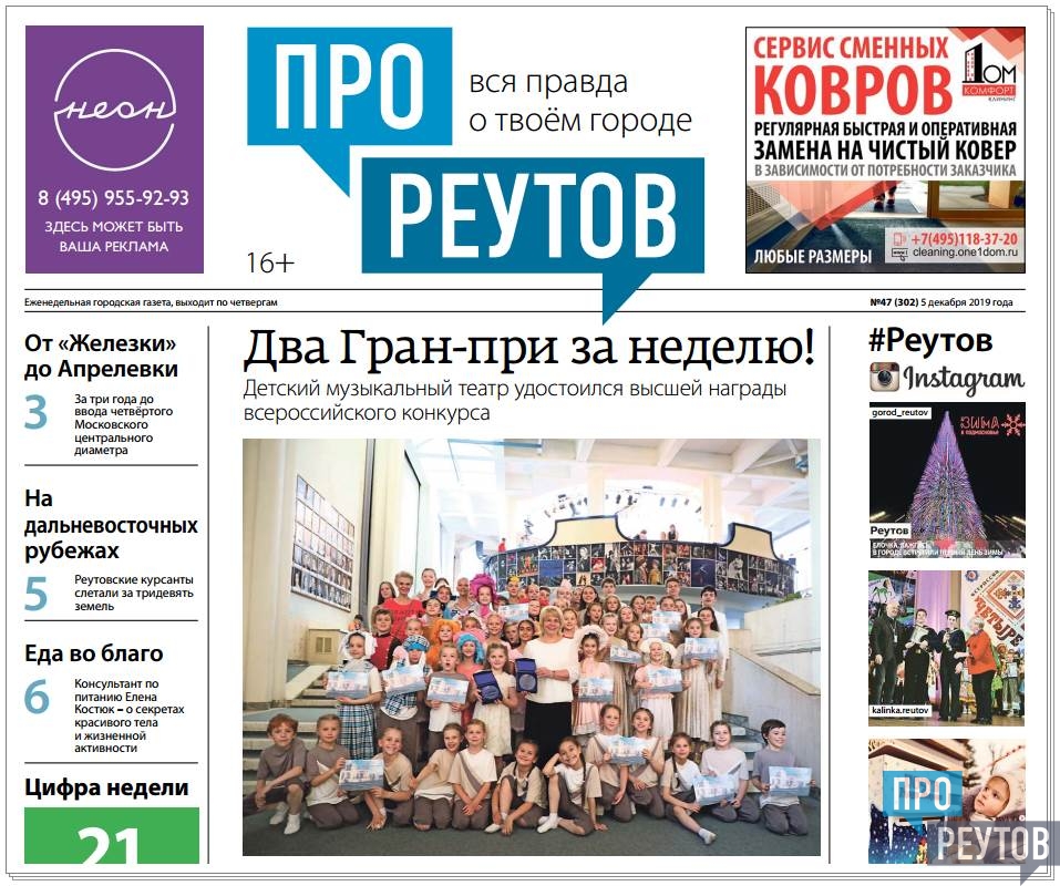 В четверг 5 декабря вышел 47-й (302) выпуск бесплатной еженедельной газеты «ПроРеутов».