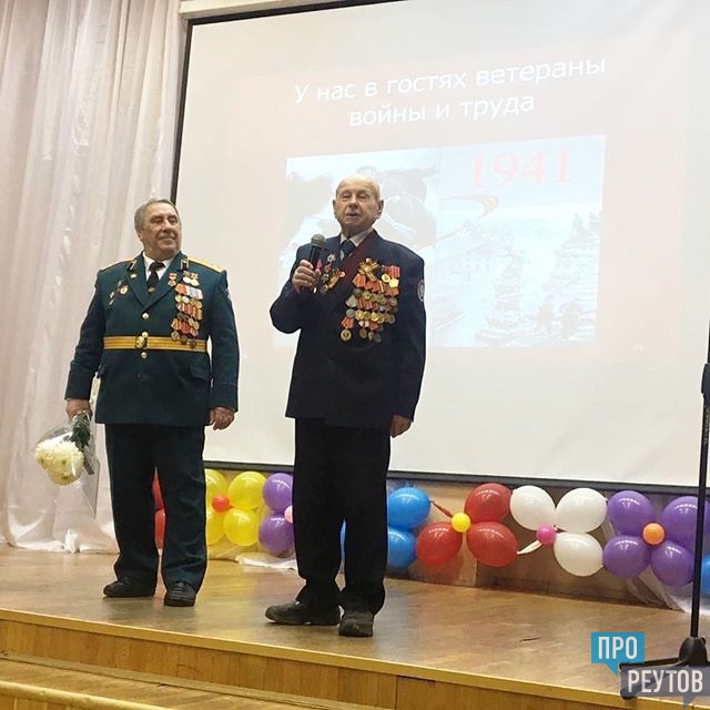 Слово от Совета ветеранов было предоставлено ветерану Вооруженных сил полковнику Александру Уманскому. Он рассказал о реутовских ополченцах и пожелал школьникам любить свою родину и, если придется, то уметь ее защитить. С проникновенными словами к присутствующим обратился ветеран Великой Отечественной войны Павел Комков. В знак уважения и признательности ребята преподнесли ветеранам цветы.