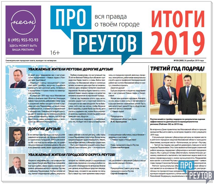 В четверг 26 декабря вышел 50-й (305) выпуск бесплатной еженедельной газеты «ПроРеутов».