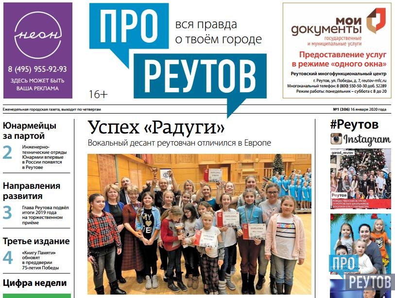 В четверг 16 января вышел 1-й (306) выпуск бесплатной еженедельной газеты «ПроРеутов».