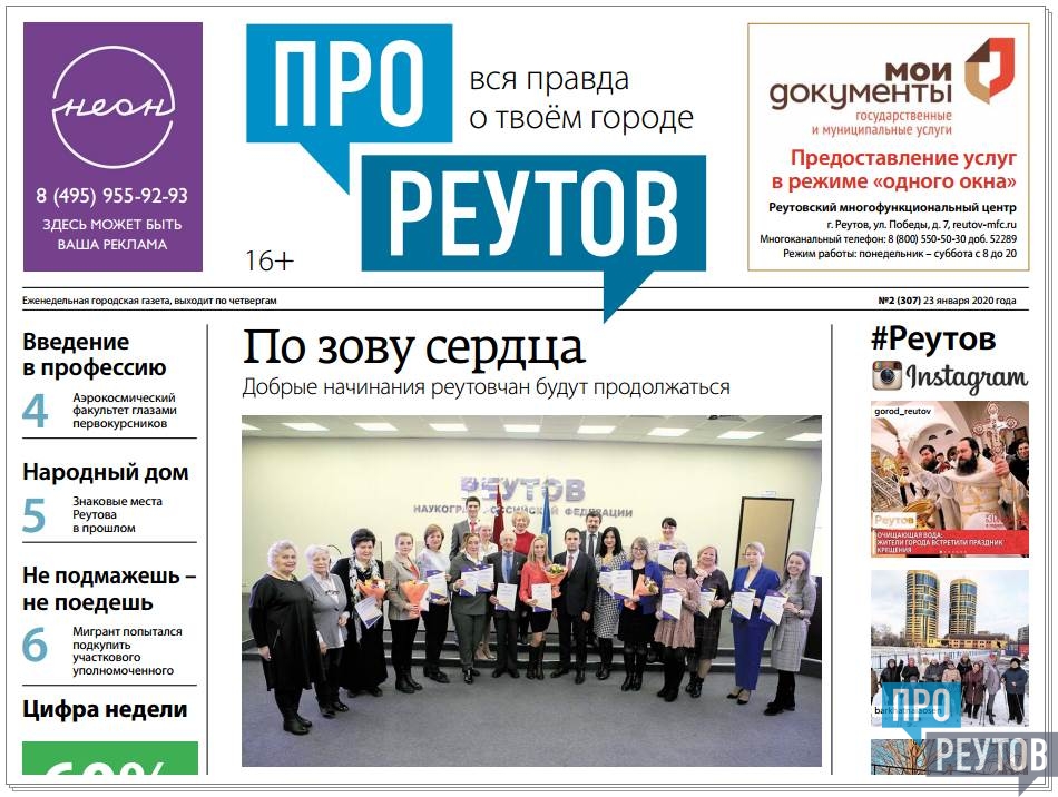 В четверг 23 января вышел 2-й (307) выпуск бесплатной еженедельной газеты «ПроРеутов».