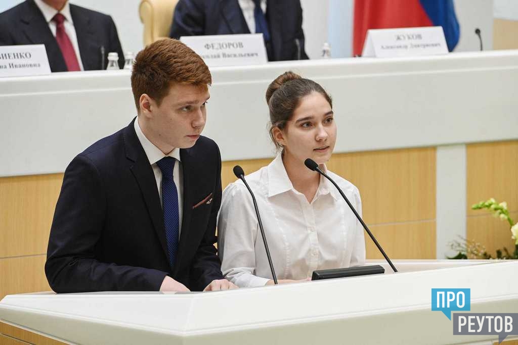 Десятиклассники реутовской школы № 6 Анастасия Борис и Сергей Полуэктов выступили в Совете Федерации на ежегодных Рождественских парламентских встречах, которые в этом году были посвящены теме «Великая Победа – наследие и наследники».