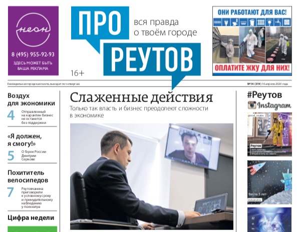 В четверг 16 апреля вышел 14-й (319) выпуск бесплатной еженедельной газеты «ПроРеутов».