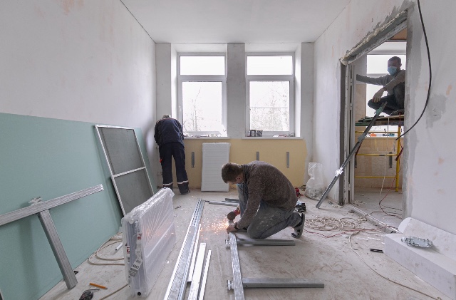 В корпусе будет создано 14 палат по 2–3 койко-места в каждой. Строительная бригада меняет систему отопления, в частности вешает радиаторы, делает систему вентиляции, занимается отделкой, устанавливает напольное покрытие.