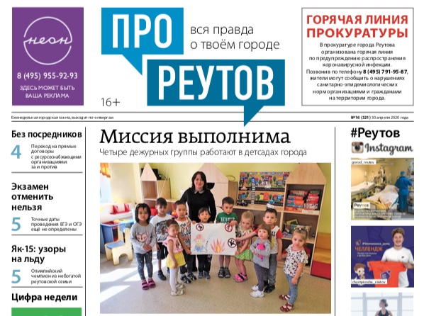 В четверг 30 апреля вышел 16-й (321) выпуск бесплатной еженедельной газеты «ПроРеутов».