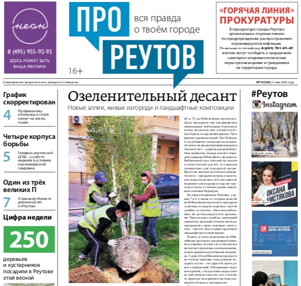 В четверг 21 мая вышел 19-й (324) выпуск бесплатной еженедельной газеты «ПроРеутов».