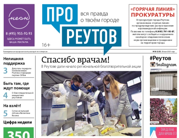 В четверг 28 мая вышел 20-й (325) выпуск бесплатной еженедельной газеты «ПроРеутов».